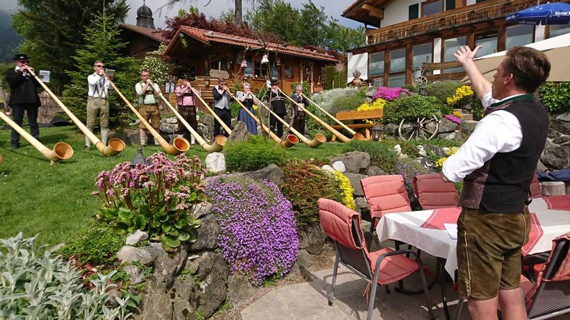 Alphornblasen vom Chef mit Traditionserklärung