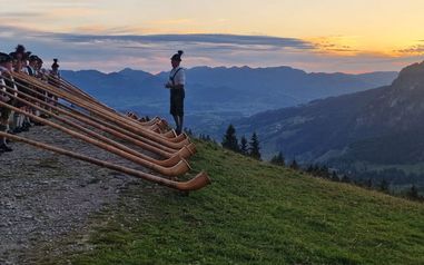 Gemeinsames Alphornspielen an besonderen Orten.