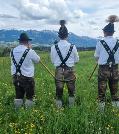 Alphornblasen vom Chef mit Traditionserklärung