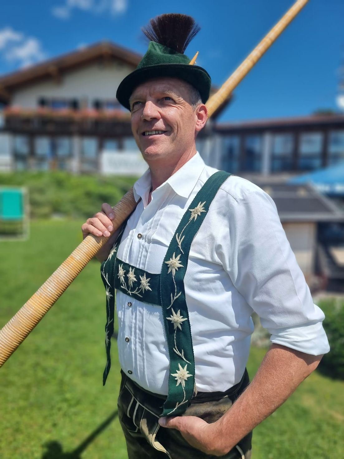 Wir freuen uns auf Sie. Familie Jörg und Jana Pöschl mit dem netten Alphorn Team