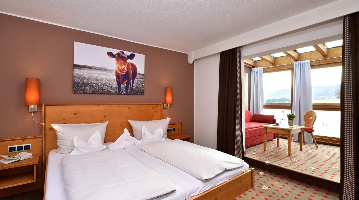 Das Besondere am Landhotel Alphorn ist seine ruhige Lage am Rand des kleinen Hörnerdorfs Ofterschwang. An unserem Hotel führen keine großen Straßen vorbei. Stattdessen ist es ringsum von gut überschaubaren Wiesen umgeben, auf denen sich Ihre Kinder gefahrlos austoben können.