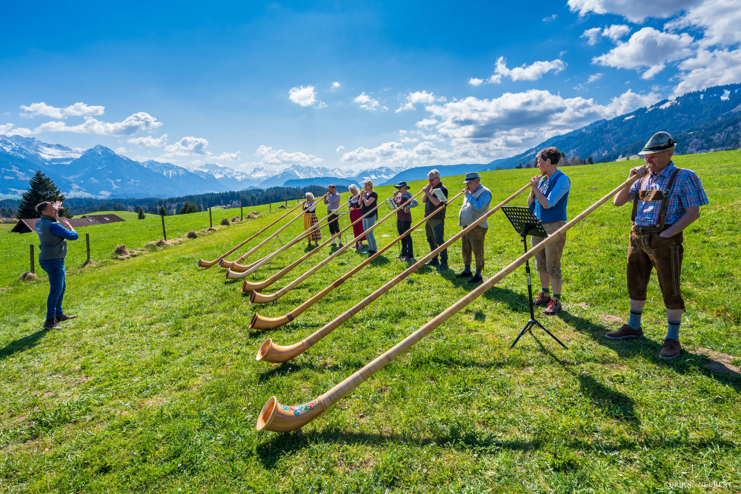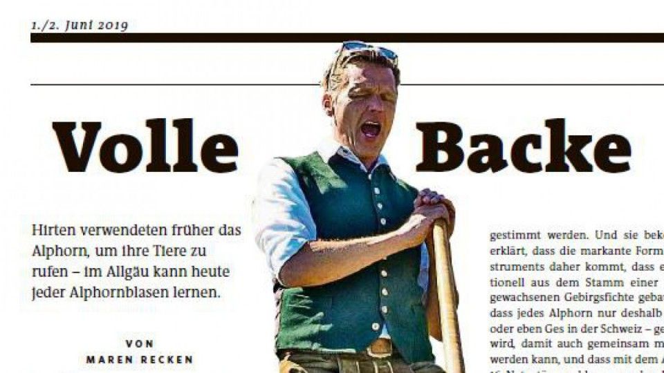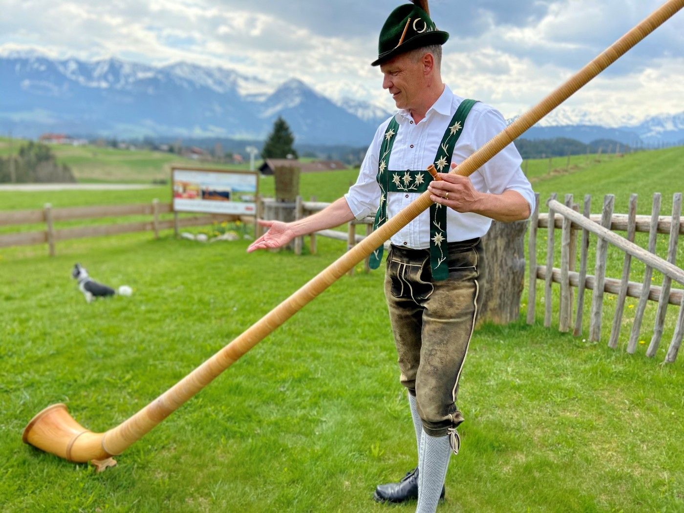 Hirten verwendeten früher das Alphorn, um ihre Tiere zu rufen. Am Klang des Alphorns erkennt das Vieh seinen Älpler. Heutzutage kann im Allgäu jeder Alphornblasen lernen.