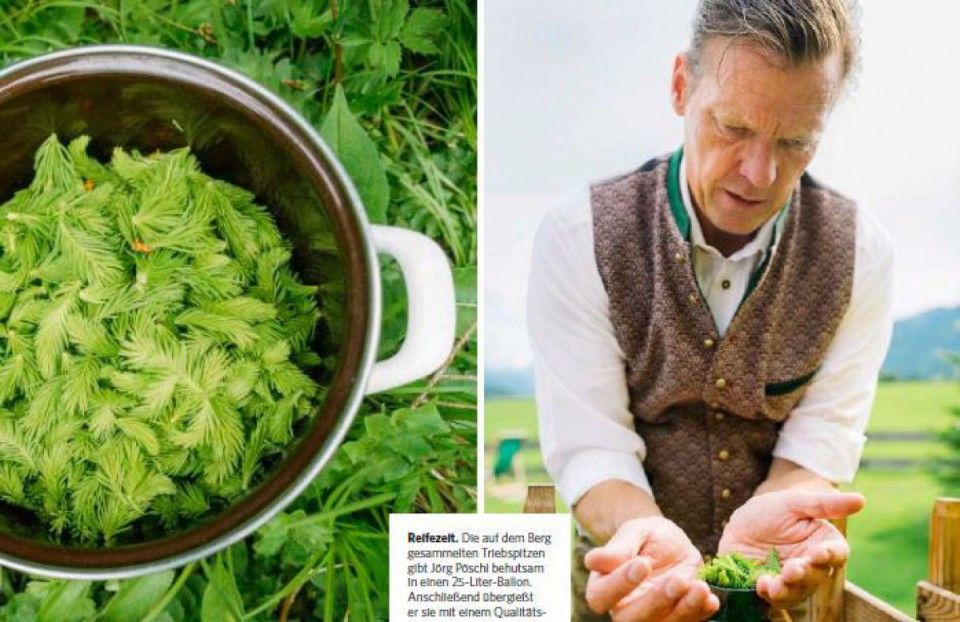 Er liebt den Genuss, die Allgäuer Berge, den Duft des Waldes. Das brachte Jörg Pöschl auf die Idee, das einmalige Aroma junger Bergfichtentriebe in einem Schnaps zu bannen. Und geboren war’s Fichtle.