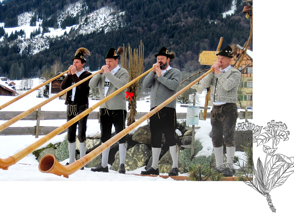 Jörg Pöschl lehrt nicht nur die Technik des Alphornblasens, sondern vermittelt auch die Geschichte und die tiefe Verbindung zur Natur. Seine Kurse betonen eine sanfte, gefühlvolle Intonation und fördern den Teamgeist, auch um die innere Ruhe zu finden und den Alltagsstress hinter sich zu lassen.