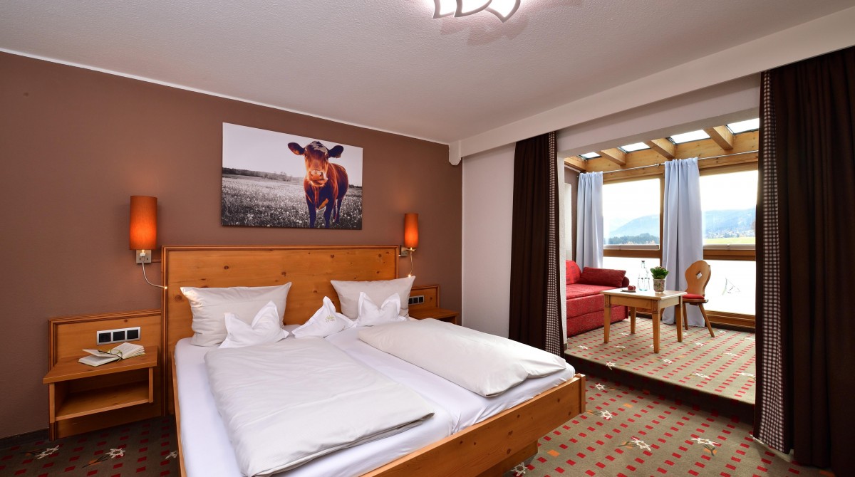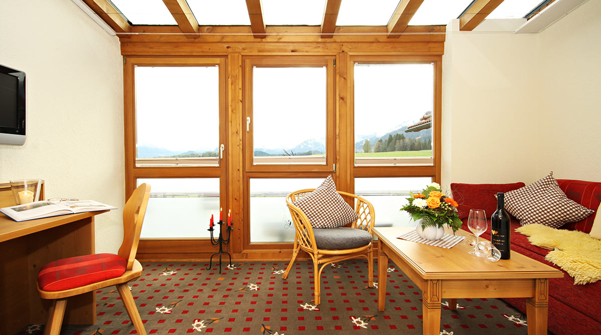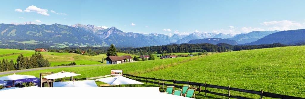 Der freie und unverbaute Rundumblick auf die imposante Bergwelt der Allgäuer Alpen, den Sie von unserer gemütlichen Sonnenterrasse oder von den Balkonen unserer Gästezimmer aus genießen können, sucht weit über Ofterschwang hinaus seinesgleichen.